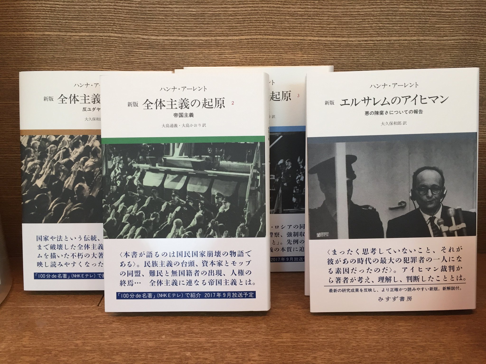 ジュンク堂書店 藤沢店 A Twitter 7f人文書 Nhk100分de名著 ハンナ アーレント フェア 開催中 全体主義の起源1 3 エルサレムのアイヒマン どちらもみすず書房より新版が発行されました 関連の書籍を多数集めています 人文書柱まわりに