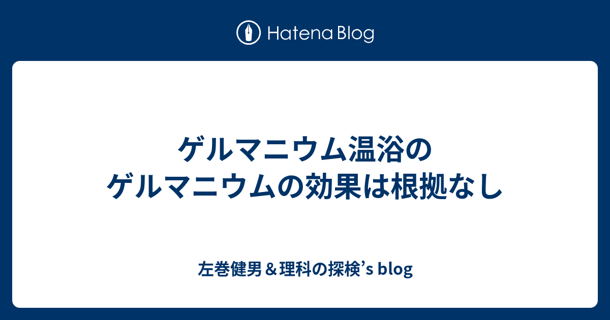 ゲルマニウムの健康効果 ゲルマニウム温浴の効果に根拠無し 左巻健男 理科の探検 S Blog