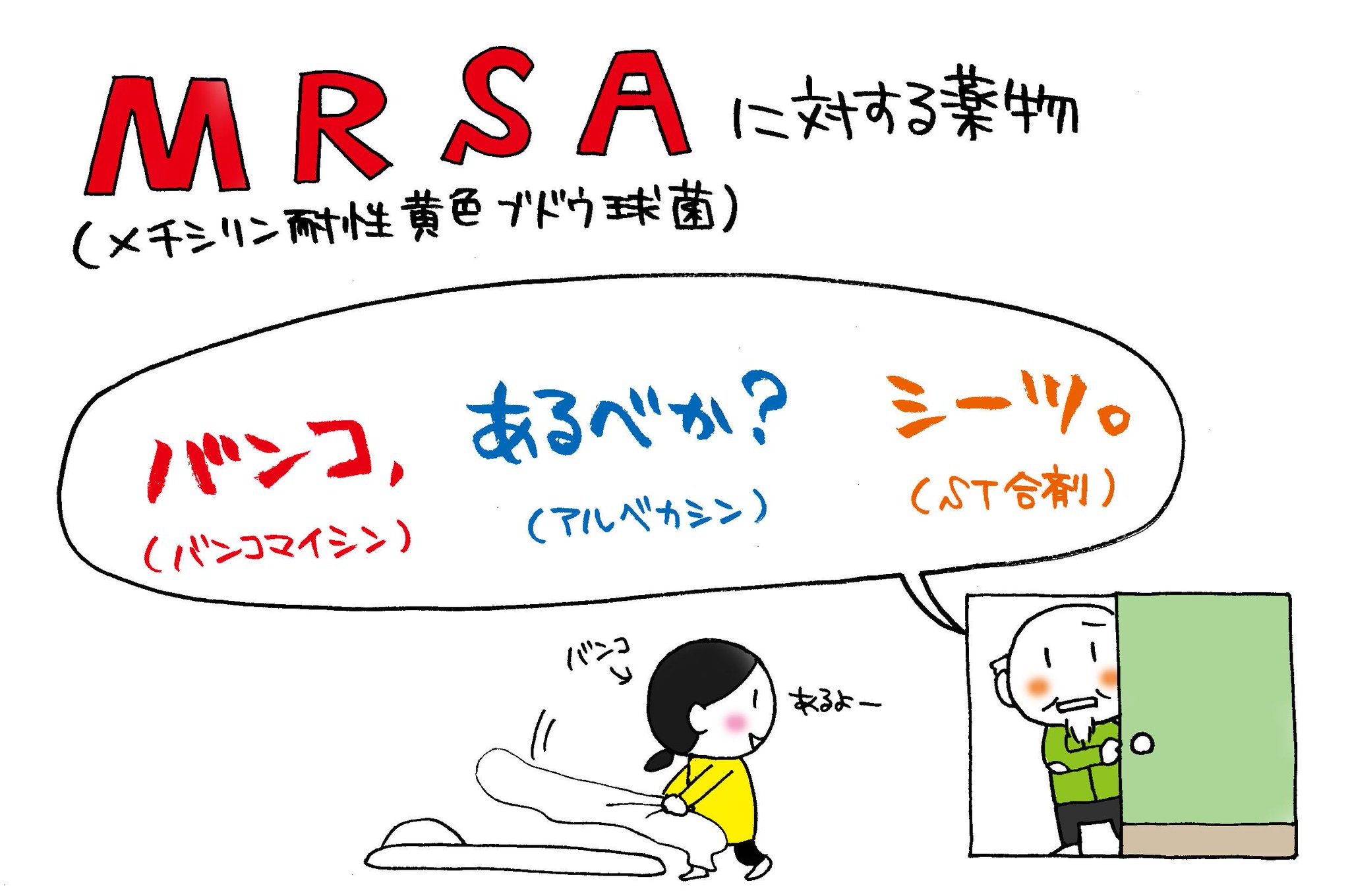 シバキヨ On Twitter 看護師国家試験対策 Mrsa メチシリン耐性黄色ブドウ球菌 に対して抗菌力ある薬物の覚え方をご紹介 バンコ あるべか シーツ で覚えてみてー O Http T Co Ru8cnh597r Http T Co Srjmyny613