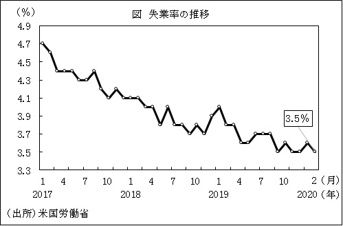 2月の米失業率は3 5 と前月より低下 雇用者数の増加幅は前月と変わらず高水準を維持 米国 ビジネス短信 ジェトロ