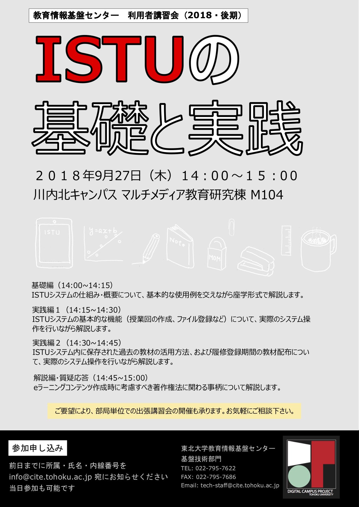 東北大学データ駆動科学 Ai教育研究センター On Twitter Istu 利用者講習会 9月27日の午後 当該講習会をicl演習室1 M104 にて開催します 多数のご参加をお待ちしています なお 教育系情報システム講習会とは日時が異なりますのでご注意ください Https T Co