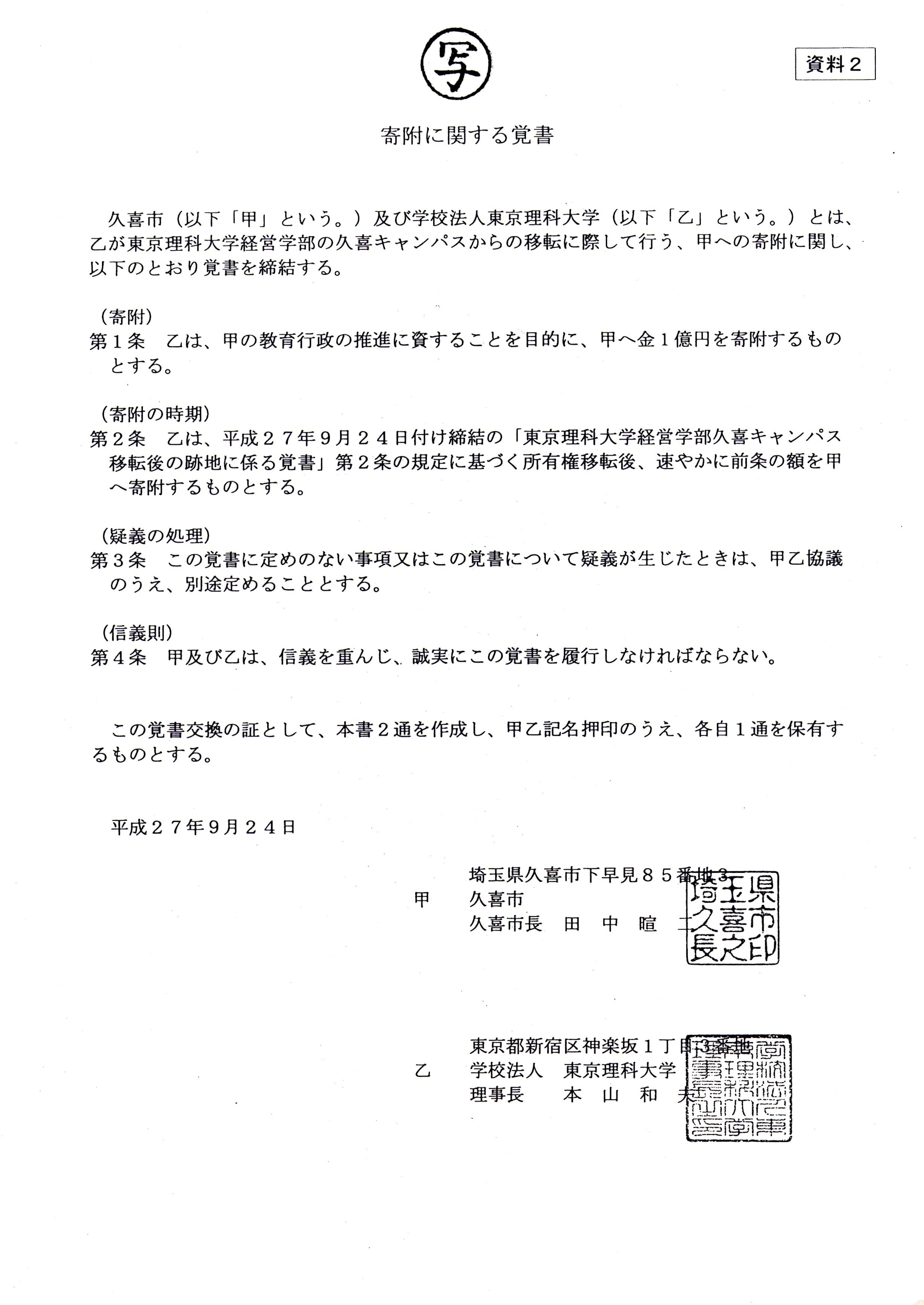 覚書 を 締結 する